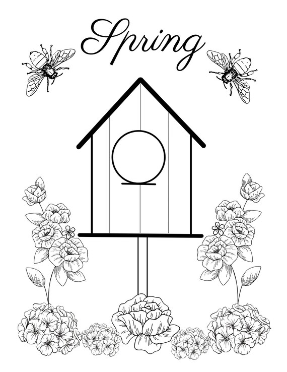 Coloring Page Spring Coloring Page Birdhouse Coloring Etsy